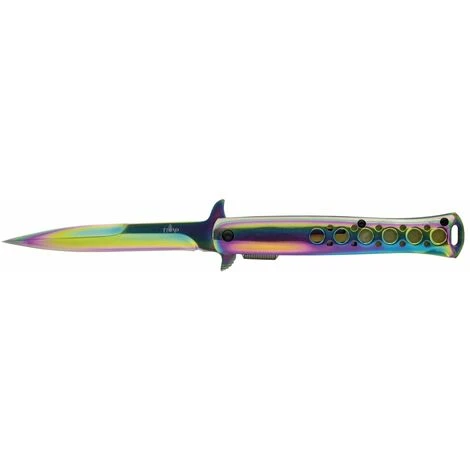Assisted Style Third 11358W mango titanbeschichtetes Aluminium rainbow blank und titanbeschichtete Edelstahlklinge rainbow blank 10 cm, mit Clip;