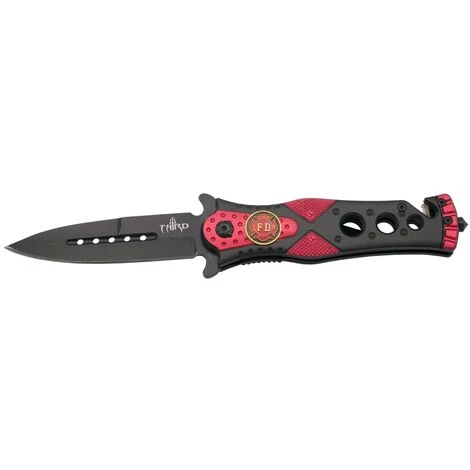 Drittes unterstütztes Sicherheitsmesser der Luftwaffe, Mango aus rotem/schwarzem Aluminium und 10,1 cm Edelstahlklinge, mit Sicherheitsgurtschneider und Glasbruchspitze.