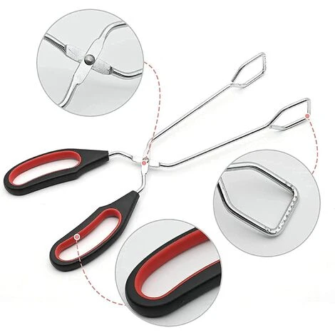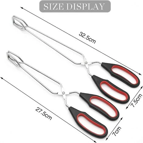 Sicherheitsgriffdesign: Der Griff hat eine Schutzhülle, die Ihre Hände vor Schnittkanten schützt, wenn Sie den Griff greifen. Einfache Griffsteuerung und Vermeidung von Wackeln und Verbrennungsgefahr. Damit die Steckdose Das Halten von Gegenständen ist angenehmer, Sie können die unterschiedlich großen Lebensmittel mit der Scherenzange schneiden und wenden