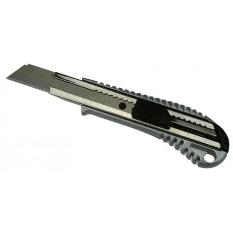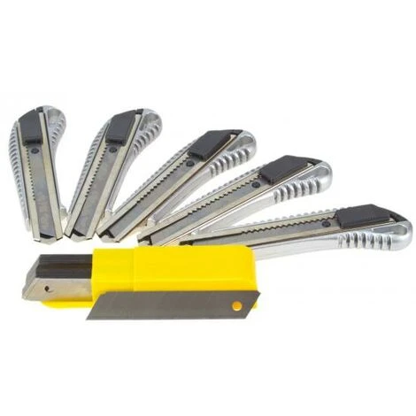Sehr robustes Alu Druckguss Gehäuse.Für den täglichen Einsatz geeignet.Besonders handlich und griffig, durch genoppteGummierung auf der Rückseite.Klingengröße: 18mmMesser-Länge: 15cmMesser-Breite: 3cmLieferumfang:- 5 Profi Alu Cuttermesser- 50 Abbrechklingen