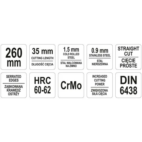 Diese Figurenschere von YATO ist leicht und dennoch leistungsstark. Diese Metallschere schneidet durch Zinn- und Stahlblech wie durch Papier!