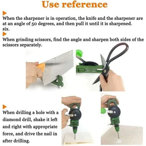 - ? Wenn der Spitzer verwendet wird, stehen Messer und Spitzer in einem 50-Grad-Winkel, ziehen Sie dann daran, bis er scharf ist. Beim Schärfen der Schere den Winkel finden und beide Seiten der Schere separat schärfen.