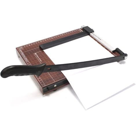 Hebelschere zum Schneiden von dünnem Papier oder Pappe. Ideal für einen geraden und schnellen Schnitt von Papieren, Fotos, Dokumenten, Kartons und Ähnlichem. Es behandelt eine Scherung mit der Basis des Holzes und mit den Füßen des Gummis der maximalen Adhärenz, um die Verschiebungen auf dem Tisch zu vermeiden. Wirtschaftsmodell mit hervorragendem Preis-Leistungs-Verhältnis.