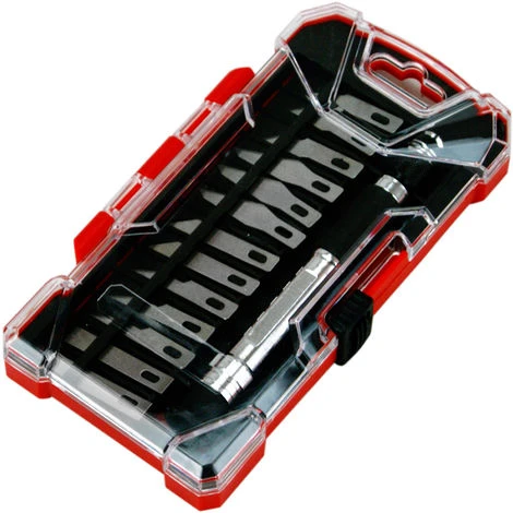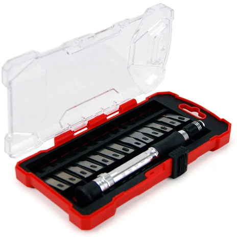 Das unerlässliche Schneidewerkzeug für Ihre Hobby- und Bastelwerkstatt: Schneidet Papier, Pappe, Stoff, Leder, Kork, weiche Kunststoffe und Holzteile. Mit den 13 verschiedene scharfen Klingen aus hochwertigem Stahl und 1 Präzisions-Messerhalter decken alle Einsatzgebiete ab. Von filigranen Bastelarbeiten über das Zuschneiden von Papier, Pappe und Fotos bis hin zum Modellbau und jedem erdenklichen Bastelarbeiten. Die extrem scharfen Klingen werden durch Magnete im Kunststoffgehäuse sicher und übersichtlich gehalten.