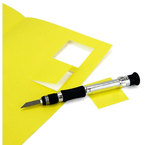 • Schneiden Sie damit mühelos sämtliche Materialien zu wie Papier, Karton, Wachs, Leder, Kunststoff uvm
